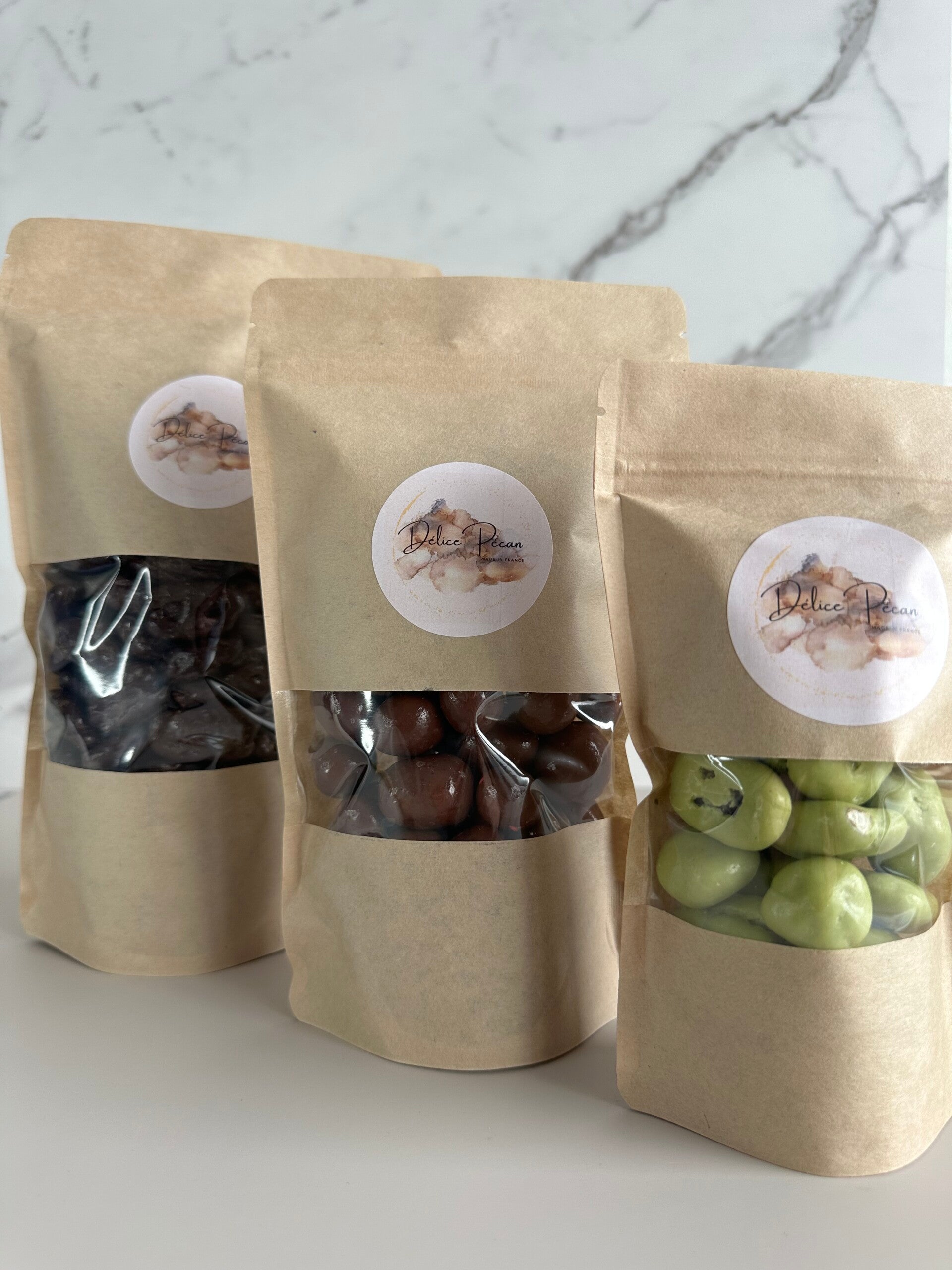 Chaque noix est d’abord torréfiée pour révéler ses arômes naturellement beurrés, puis enrobée d’un chocolat au lait doux et onctueux. Une fine touche cacaotée façon truffe vient ensuite envelopper l’ensemble pour apporter une profondeur aromatique délicate, sans jamais dominer ni apporter d’amertume.